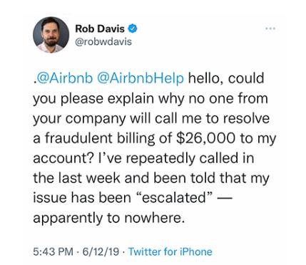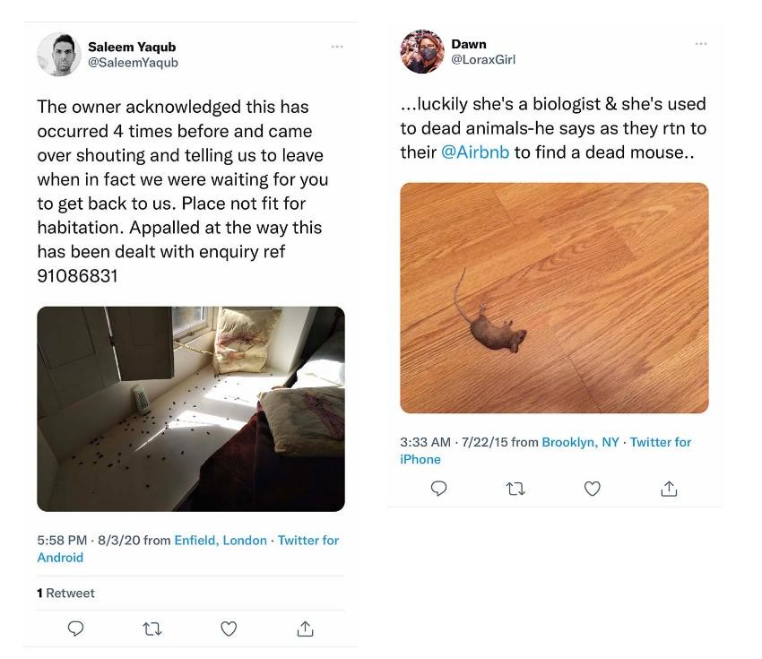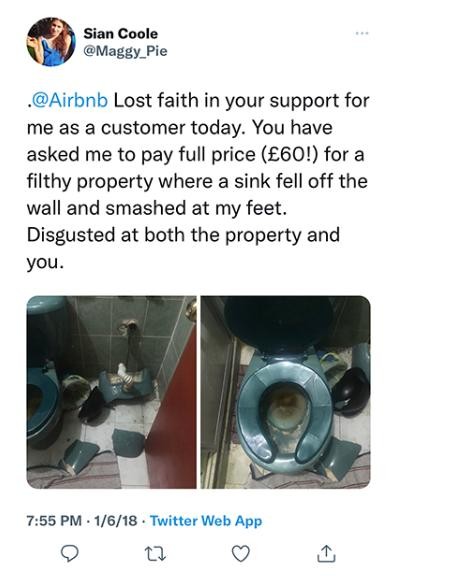 在推特上很多关于爱彼迎的客户投诉都体现出这个公司十分善于规避责任。平台的客服部门通常会用保持沉默或引用一些含糊不清的服务条款来与住客交涉。弗格森指出,酒店受到的监管力度与短租房受到的监管力度完全不同。在酒店遇到问题时,消费者可以与酒店的前台、经理沟通解决。而由于爱彼迎平台严重依赖人工智能技术并将部分客服部门外包,因此,客人遇到问题时,无处可反馈。