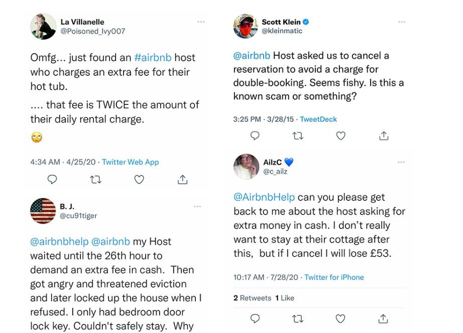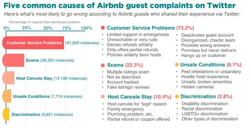 团队分析了在2015年1月1日至2020年9月20日期间,在推特上发布的与爱彼迎相关的127183条推文,其中包括客人对他们住在从爱彼迎预定的民宿期间遇到的相关问题的投诉。团队随后运用人工编码、机器学习和自然语言处理等技术将这一大型数据集进行了分析总结。