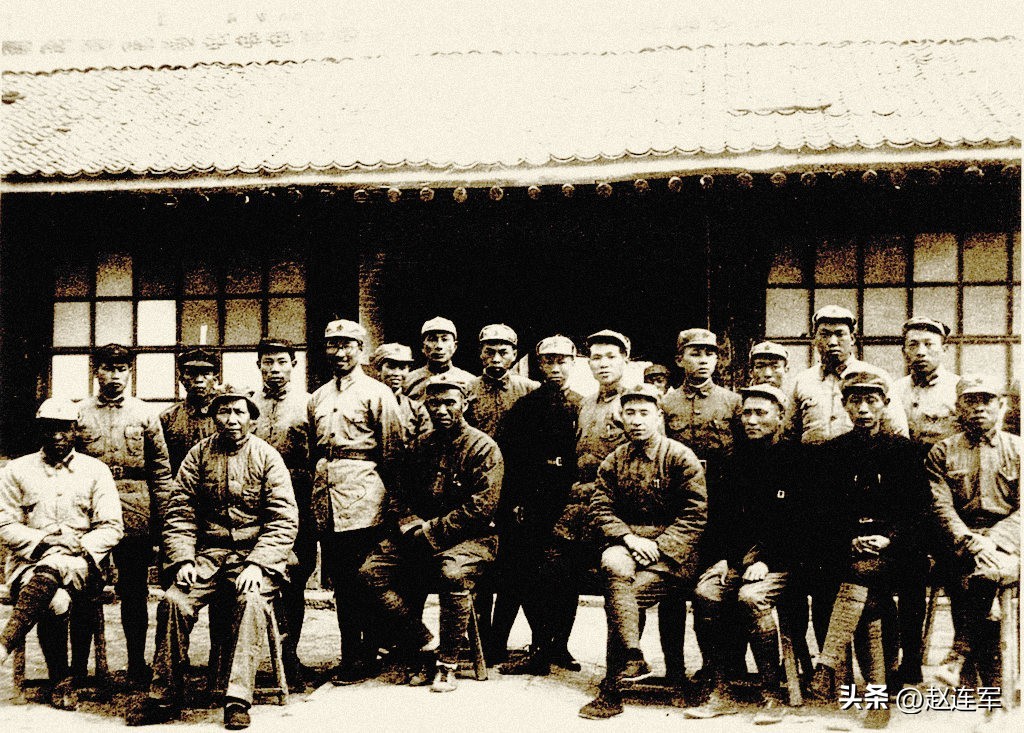 1937年中央苏区的战友一起在红军大学与毛泽东、朱德合影。前排左二毛泽东,左三朱德,左四 林彪,左七赖毅。