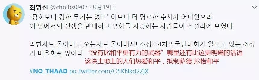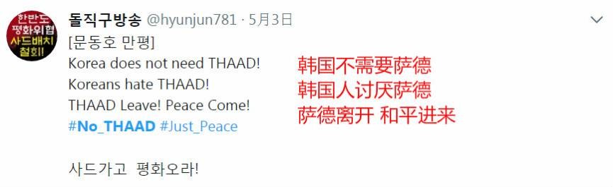 而一直以来,在社交网络上,韩国民众对于“赶走萨德迎来和平”的呼声也一直存在: