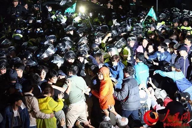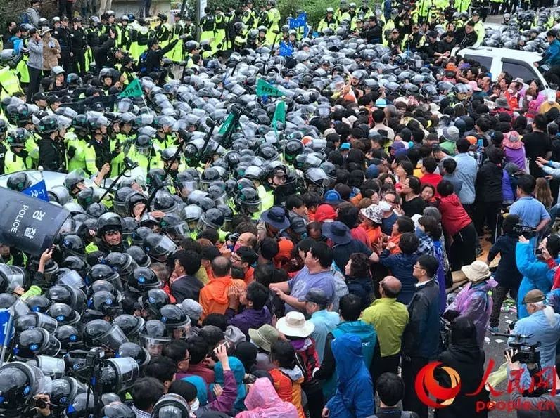 在“萨德”即将部署完成的前夕,数百名韩国当地民众就在离部署地最近的村庄彻夜进行集会,誓死抵制部署,直到韩国政府派出8000人规模的警力进行交通管制和强制疏散民众。