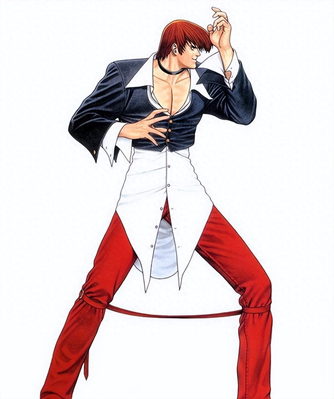 八神庵留着飘逸的红色短发,气质方面尽显一种嚣张。