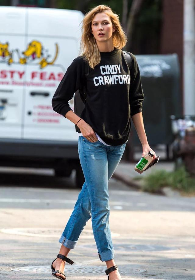 印有字母或者品牌logo的卫衣近来成为各大时尚博主的热爱。一方面字母的设计会增添时尚感,避免宽大卫衣上大面积的无趣,另一方面有点上世纪七八十年代的复古风。如果选择高腰长裤作为搭配,卫衣建议选择短款,可以拉长腿的比例,还可以露出你的小蛮腰哦~