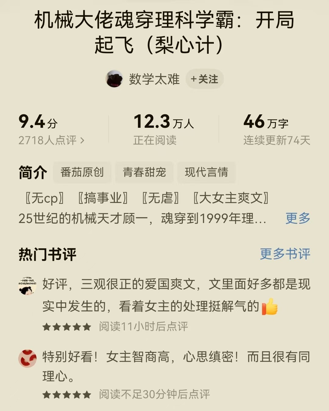 2、《机械大佬魂穿,理科学霸开局起飞》作者:数字太难