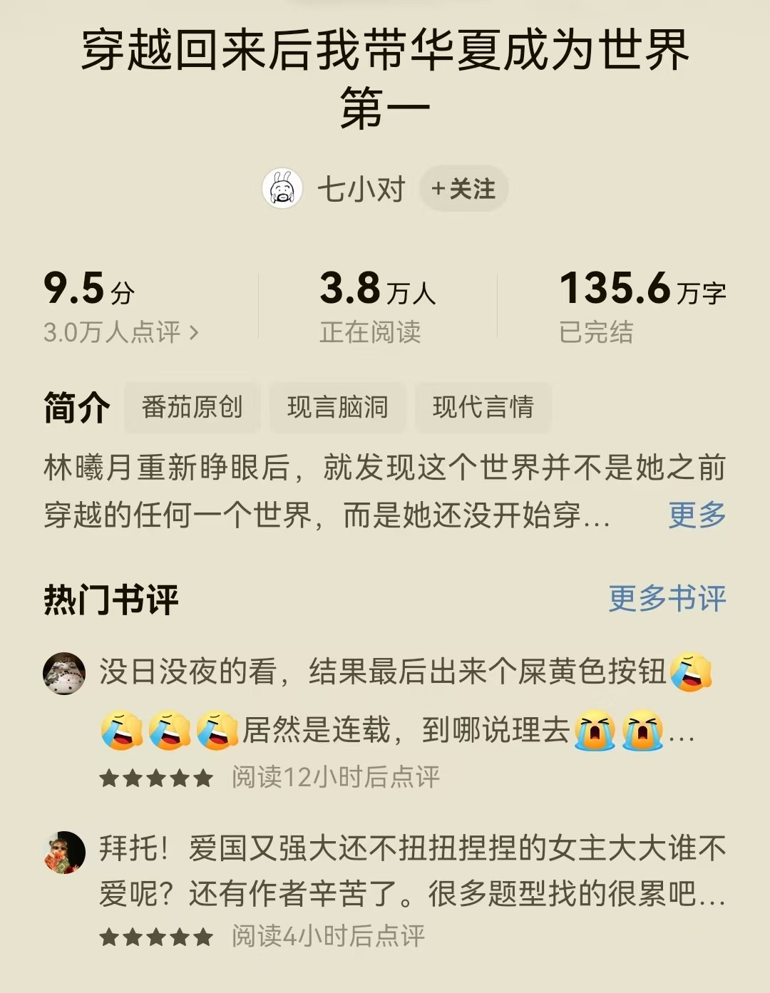 1、《穿越回来后,我带华夏成为世界第一》作者:七小对