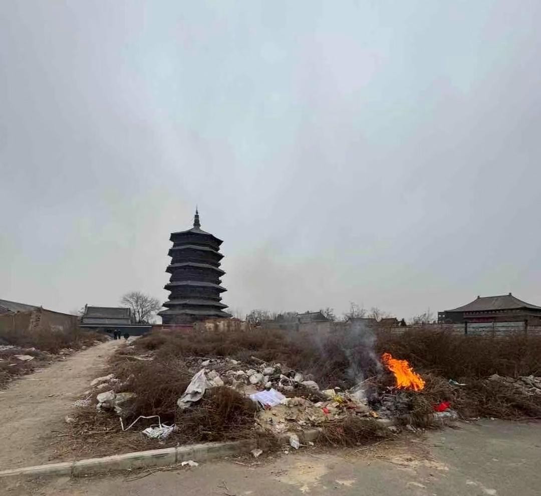 网友称山西应县木塔周围有明火燃烧 当地:起火点为定点垃圾清理点,在保护区范