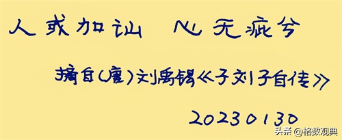 【每日一典】“人或加讪,心无疵兮”摘自(唐)刘禹锡《子刘子自传》——要坚定自己的理想和信念,不要随便因为别人的中伤或者其他言语而改变自己的志向,做一个意志坚定的人,不同流合污。