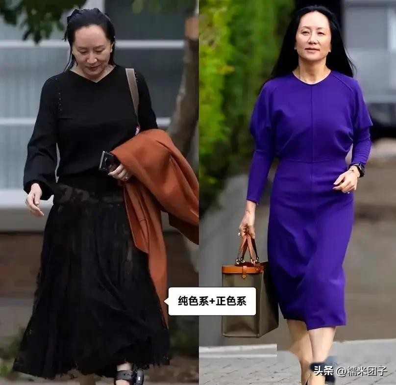 在配色方面,孟晚舟也有着自己的一套合理的法则。她喜欢将全身的配色控制在三种以内,不会选择过于鲜艳的颜色,也不会选择过于多样的颜色。