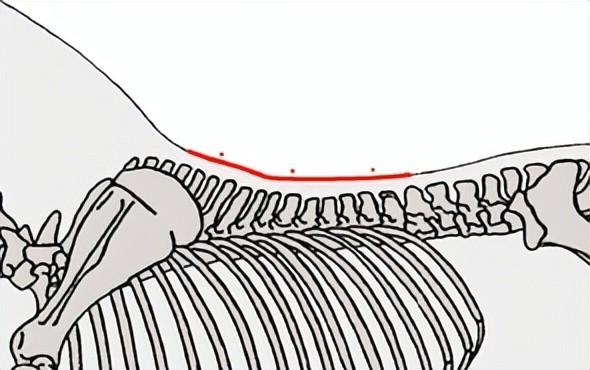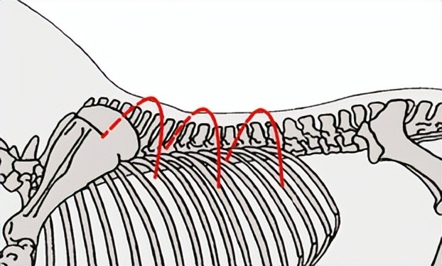 第二,马匹出现背部酸痛情况。将我们的手放在马匹肩膀上脊柱两侧,摸着马的背部分别向尾部移动,观察这期间马匹是否出现不自然的反应。