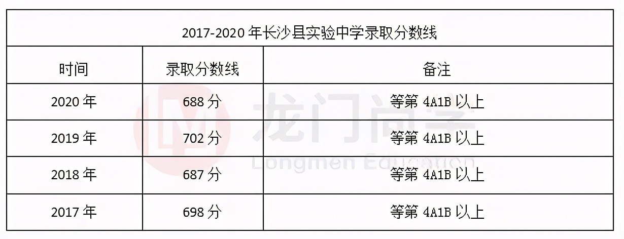 从录取分数线上来看,长沙县实验中学近年分数线一直保持在总分680分,等第4A1B以上。