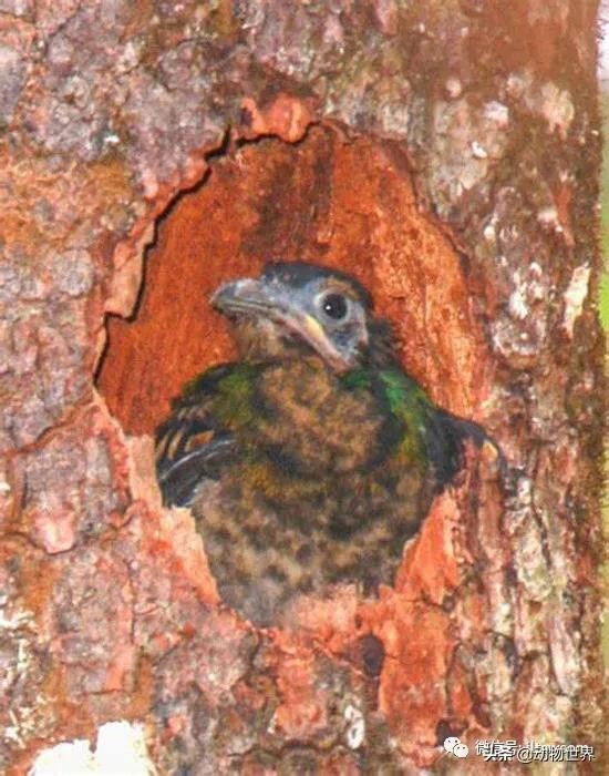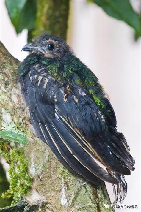 幼年的凤尾绿咬鹃保留有一双原始的爪,就像始祖鸟的爪,成年后消失。