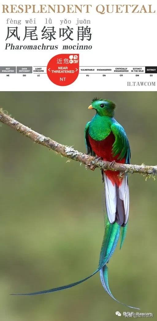 凤尾绿咬鹃 是咬鹃科中一种外观十分华丽的鸟类。分布于在南墨西哥到西巴拿马等地,与众不同的是,其他咬鹃科的鸟都是在南美洲及东巴拿马中出现。它们在中部美洲神话当中占有重要的一席位。