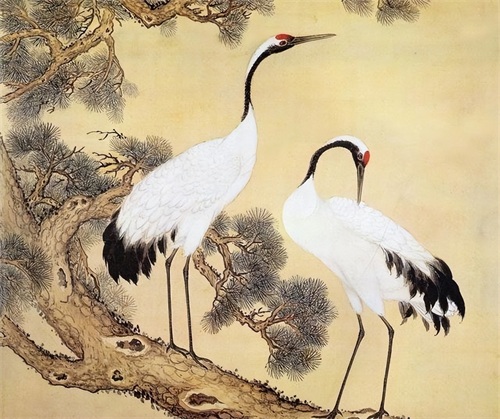 丹顶鹤在民间被赋予了诸多积极的象征,如吉祥、长寿和忠诚等。这种鸟类在自然环境中的寿命可长达50至60年。因此,人们常常将它与松树一同视为长寿的标志,在艺术作品中将它们放在一起。事实上,早在三千多年前的殷商时期,丹顶鹤的形象就已经出现在墓葬中,成为了长寿的象征之一。