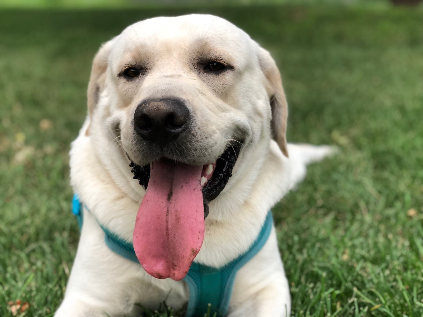 养过拉布拉多的铲屎官知道,小时候的拉布拉多自己还能抱起来,而长大的拉布拉多一下子就能把自己扑倒,每次都被它撞倒在地,还要接受它的舔脸,真是又心酸又幸福。