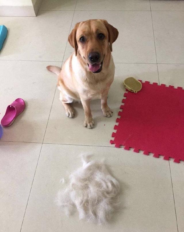 拉布拉多虽然是一只短毛犬,没有金毛长毛犬掉的那么多。但是掉毛能力也是很强悍的,每天都要给它梳毛打理,不然狗毛在家里飞得到处都是。