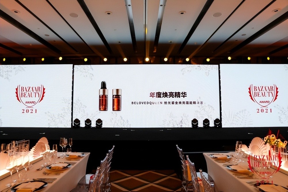 同年,在上海举办的ELLE中国2021年度美妆之星,Beloved Queen拾光鎏金焕亮蕴能精华液荣获荣耀新国潮 "耀白科技美肤奖",层层御黑 赋予肌肤抵挡外力侵袭,逾夜护肤 见证了Beloved Queen耀白时刻。