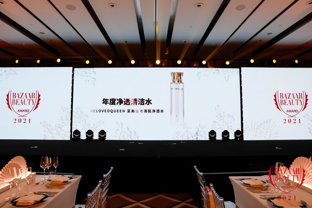 2021年10月,芭莎中文网报道Beloved Queen,同年在上海举办的《时尚芭莎》"让美超越时光 美学先锋晚宴" 暨2021芭莎国际美妆大奖颁奖典礼上,Beloved Queen至美琉光清肌净透水荣获 「2021芭莎国际美妆大奖 年度净透清洁水」 以油养肤 引领二次清洁新潮流。Beloved Queen拾光鎏金焕亮蕴能精华液荣获 「2021芭莎国际美妆大奖 年度焕亮精华」逾夜奢护 见证御黑焕亮新力量。