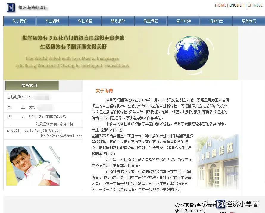 1992年,由于很多人来请马云做翻译,马云成立了海博翻译社,请退休老师做翻译。“海博”是英语希望“hope”的音译。不过翻译社经营很困难,卖过鲜花和礼品,还曾经销售过一年的医药。