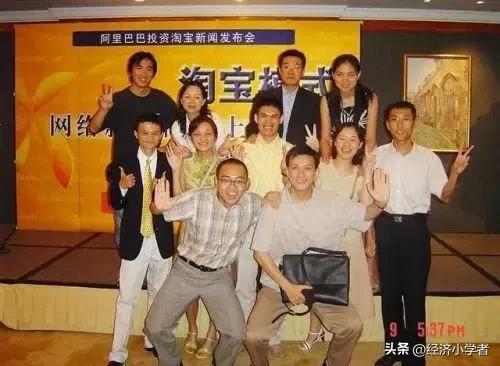 马云在阿里巴巴投资淘宝新闻发布会上与同事合影