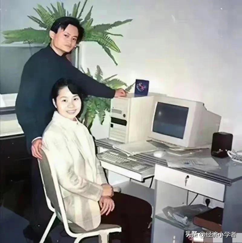 1996年,杭州,正在创业的马云和他的校友张瑛合影 。张瑛是绍兴人,年轻时的张瑛,五官清秀,气质满满,一看就是“旺夫相”。创业没多久,她就与马云步入婚姻的殿堂。她的工号是002号,不仅每天起早摸黑的干活,还要加班加点安排整个公司的伙食和卫生。