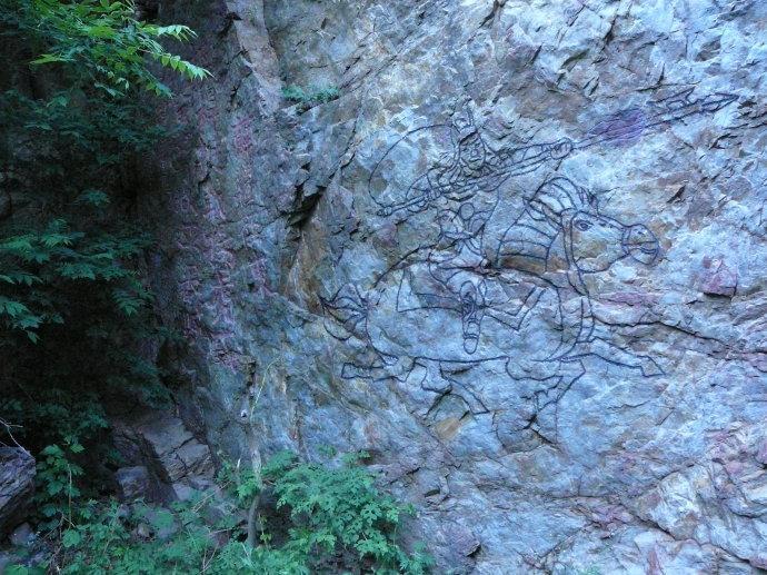 我们最先看到的就是藏君洞,开始以为能从这个洞上山呢,一看不行游人都折回来了了。这个洞就在路边不远的山脚下,看洞口不是很大,如果藏一个人的话还是有点费劲,如果真进去了让人堵住洞口恐怕真的完蛋了。