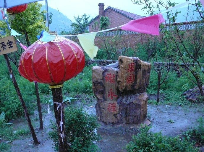 这时的雨已经很大了,游人都躲了起来。我独自寻找小蒙的豆腐坊,在寻找的路上看到了谢永强的果园。原来果园就在路边,总共也没有多少棵果树。也不知还有没有比这大的果园了,如果没有我可服了他们了,镜头是怎么拍的呢?
