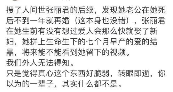 纪录片《人世间》播出5年后,顶着癌症也要为丈夫生下孩子的张丽君万万没想到,再一次进入公众视线会是这样的方式。