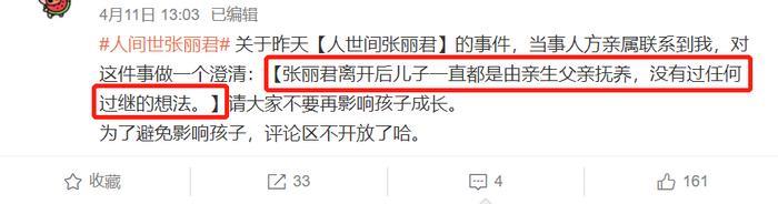 张丽君离开后儿子一直都是由亲生父亲抚养,没有过任何过继的想法。