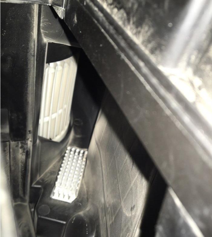 空调滤芯隐藏在副驾驶左腿侧的中控台最里面,周围空间比较小,如果不好接近,也可以把手套箱拆掉,操作空间会大一些,不拆也可以更换,就是操作空间小一些。