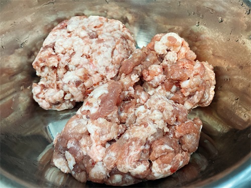 首先要选择肥瘦三七分的猪肉,这个比例,做出来的狮子头不肥不柴,口感比较好。然后卖猪肉的时候让师傅搅碎了,因为不能用家里的料理机搅碎,也不能用刀剁。记住我说的,按照这个方法做,自然就可以成功做出狮子头。