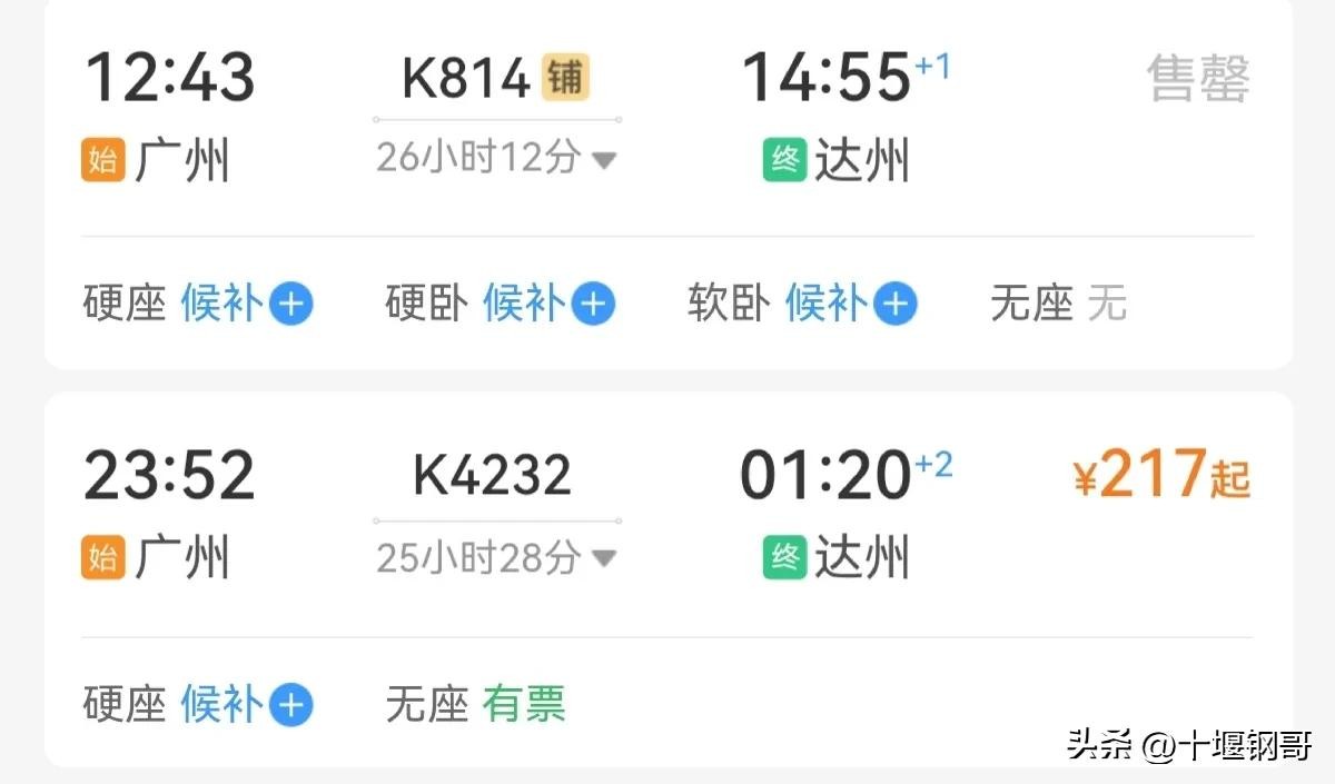 没想到广州到达州居然春运加开临客k4232次列车真是太令人羡慕了