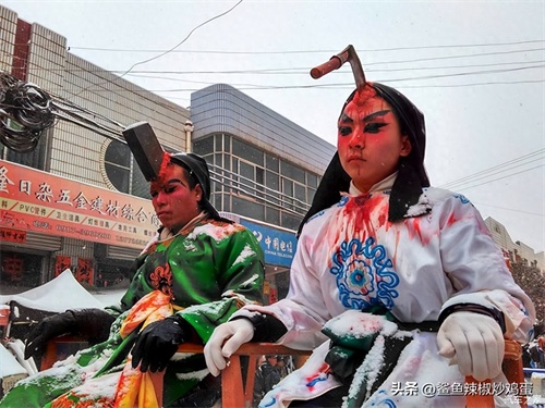 终于,在一次机缘巧合下,我有幸亲眼目睹了麟游血社火的表演。那是一个热闹的节日,广场上围满了人,锣鼓喧天,鞭炮齐鸣 。突然,一阵惊呼声传来,只见一支队伍缓缓走来,打头的正是那让人胆寒的 “斧子劈头” 角色,后面还有人被剪刀刺入眉心、被铡刀砍中脑袋,鲜血四溅,场面十分恐怖。周围的孩子们吓得躲进大人怀里,大人们也不禁倒吸一口凉气,而我,更是被这极具冲击力的画面深深震撼,站在原地,久久回不过神来,也由此对麟游血社火充满了好奇,迫切想要探寻它背后的故事。