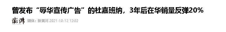 曾发布“辱华宣传广告”的杜嘉班纳,3年后在华销量反弹20% 澎湃新闻 2021-10-12