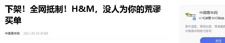 中国青年网——下架!全网抵制!H&M,没人为你的荒谬买单