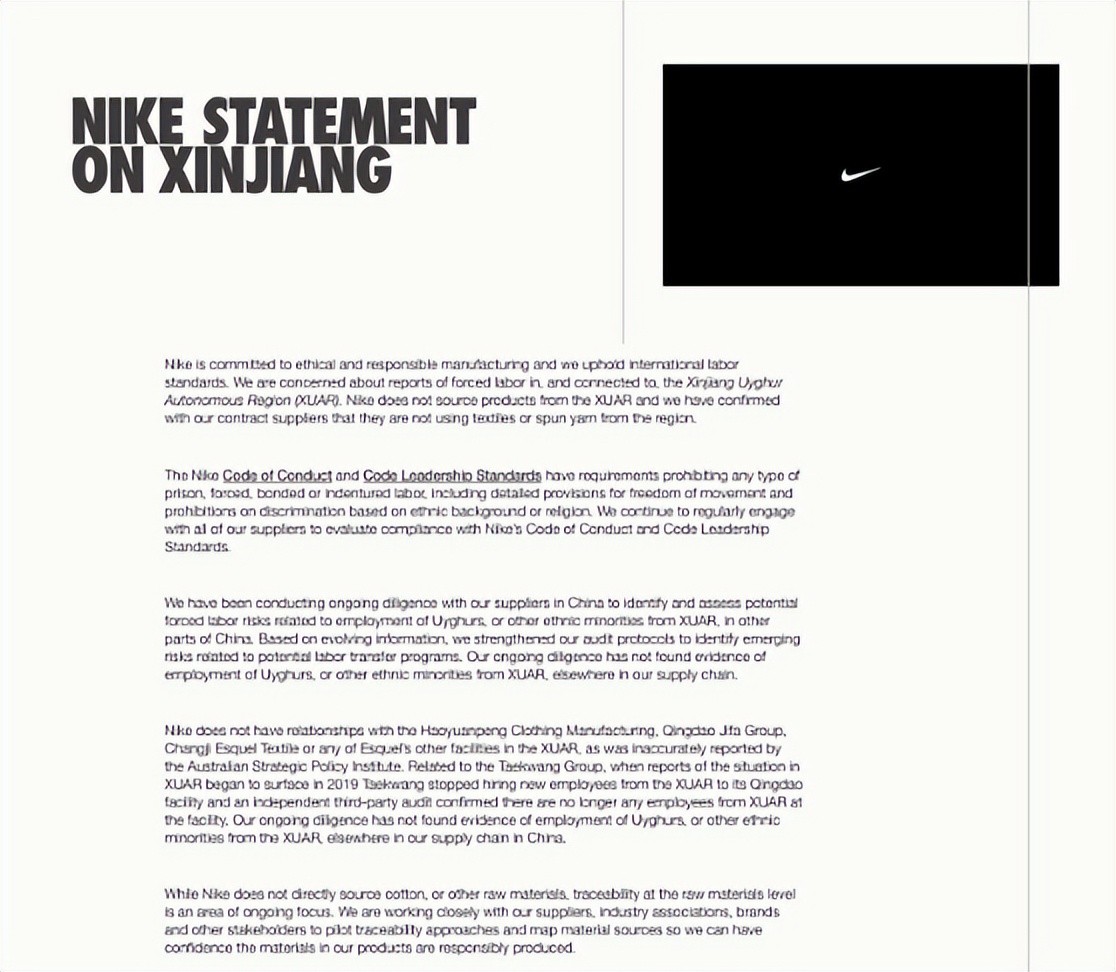 耐克的所作所为更加的令人生气,它们不仅禁止自己的品牌使用新疆棉花,而且还不再雇佣新疆员工。