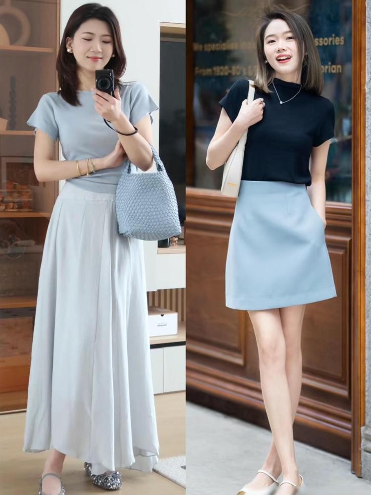 在选择半身裙时,建议选择一些简约的款式 ,如A字裙或H型裙,这些款式不仅展现出女性的柔美线条,也非常适合日常穿着。同时,颜色的选择也非常重要, 可以选择一些清新自然的颜色,如淡蓝色、浅粉色等,这些颜色不仅适合春夏季节,还能展现出女性的温柔气质。