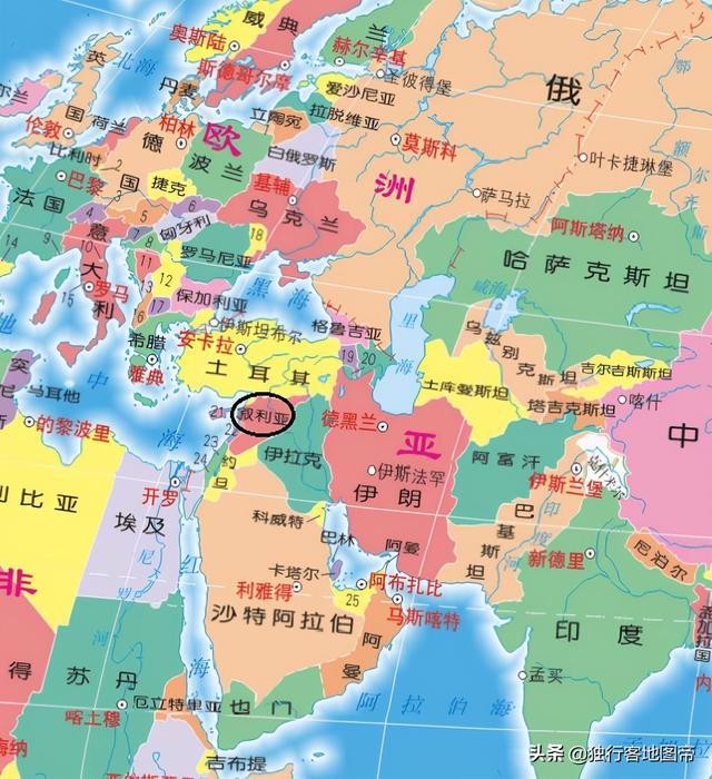 叙利亚位于亚洲西部,地中海东岸,是连接黑海与地中海的交通要道,处于欧亚非交界地带,战略位置极其重要。