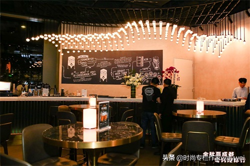 酒吧处处融入了奔驰的主题元素,就算是酒吧上的灯都是汽车的轮廓。因此不管你是不是奔驰的客户,来到这儿你都能获得体验感。