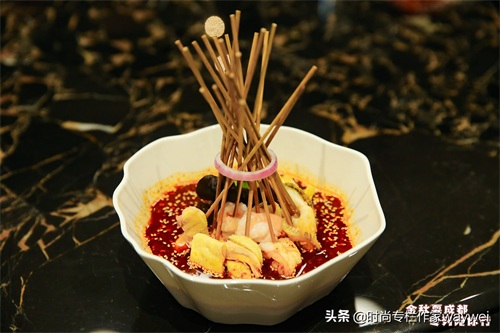 钵钵鸡是四川出名的美食,但这家餐厅的美食连钵钵鸡都十分高级——用的材料是鲍鱼和虾等等,是一道高配版的钵钵鸡了。其他美食也十分诱人,色香味俱全,简直是美食爱好者的天堂。