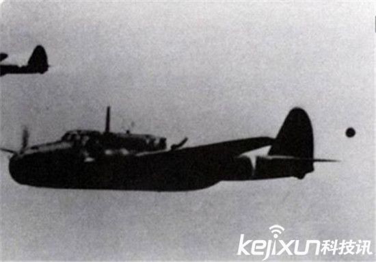 1943年,一架日本“赛利”轰炸机从日本海上空飞过,一个黑色球体尾随其后。