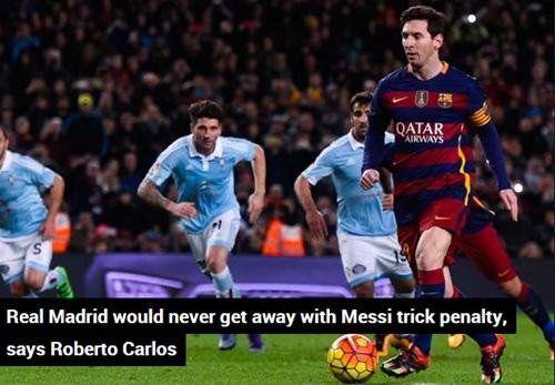 在西甲第16轮 巴萨 6-1大胜塞尔塔的比赛中, 梅西 和苏亚雷斯表演了一次让人意料不到的 点球 战术配合,令人拍案叫绝。但是 巴萨 球员的行为受到了前皇马球星卡洛斯的抨击,在卡洛斯看来,这样的行为是不尊重对手的表现,如果皇马球员做出这样的事情一定会受到猛烈的抨击。