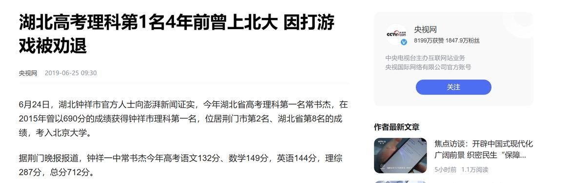 “湖北状元”常书杰:被北大劝退后以712分考进清华,现状如何?