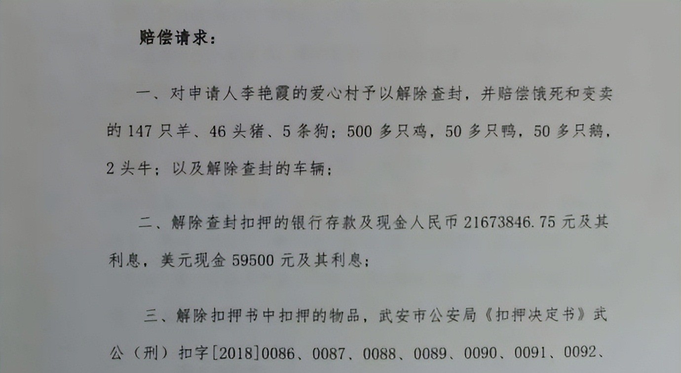 最终,李利娟被判处有期徒刑20年,并没收所有非法所得,讽刺的是,在她锒铛入狱后,她的儿子竟然向法院递交了《赔偿书》,要求返还“爱心村”的财产,包括养殖的动物、被查封的车辆以及被冻结的资金和利息。