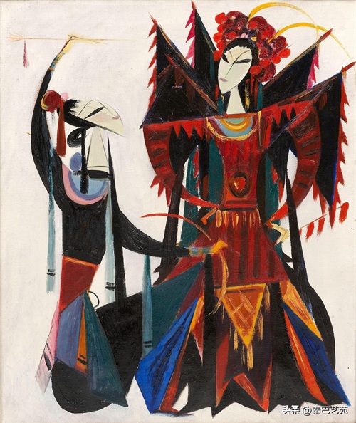 林风眠的画作,早期以油画为主,后期创作以中国画为主,他坚持非写实主义,以风景、花鸟、仕女、苗疆与戏曲人物等题材,借鉴油画、水粉水彩、国画等技法,相互融合贯通,他善于运用线条和色彩的对比,使得画面既丰富又和谐。他的画作既有东方的含蓄,又有西方的张扬,是中西文化的完美融合。