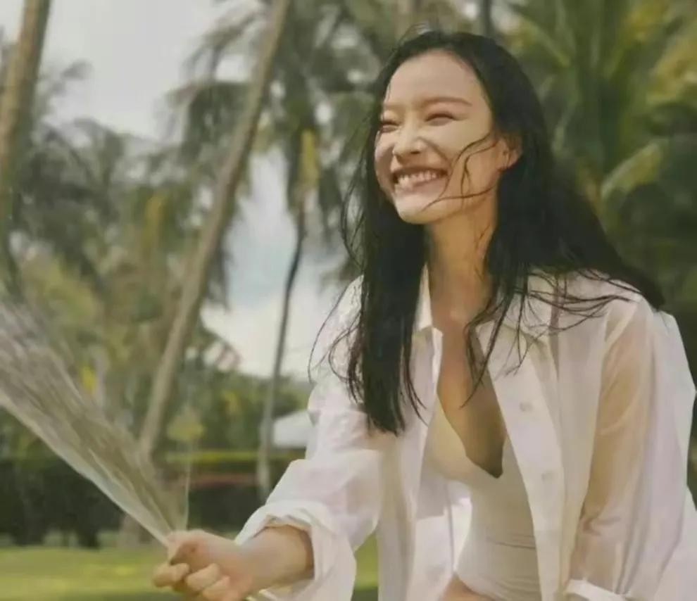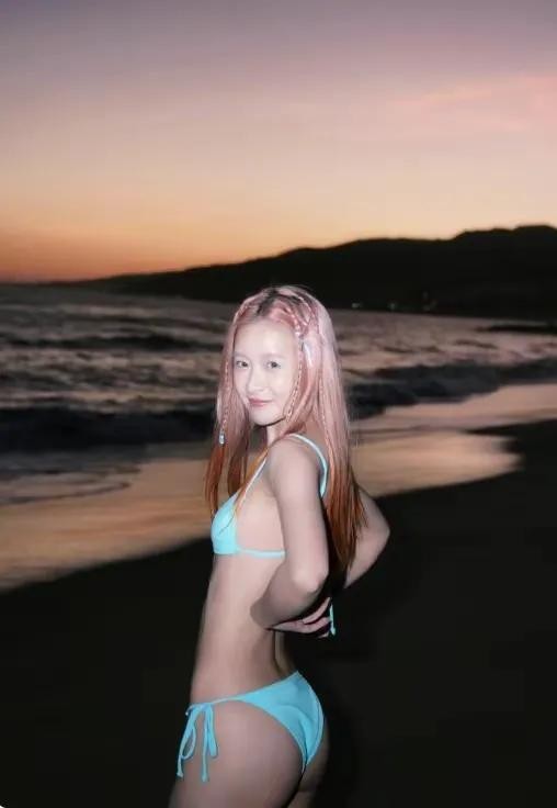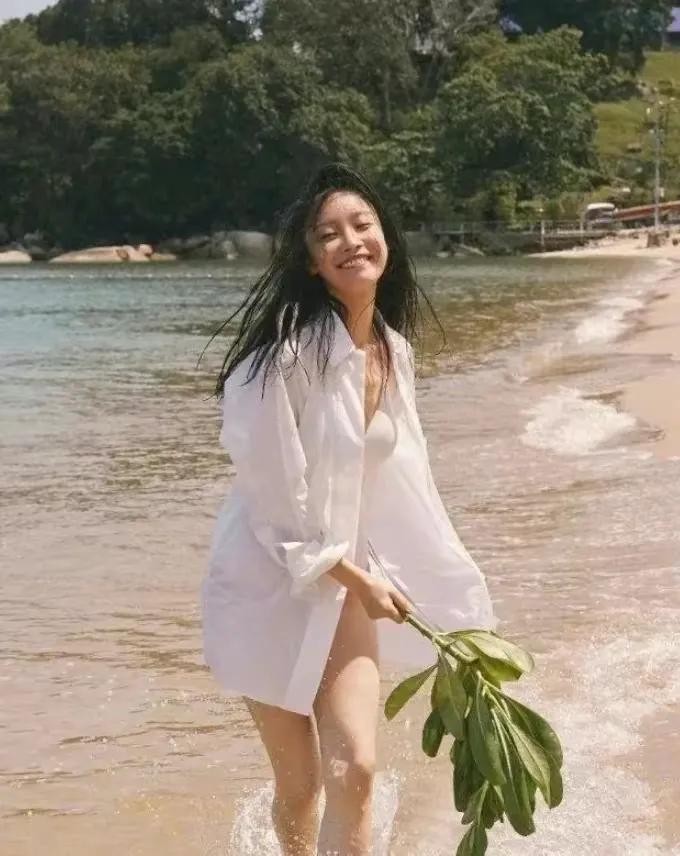 李沁一直以来都以清新自然的形象受到粉丝的喜爱。她身着蓝色泳装,仿佛是从大海中走来的女神。