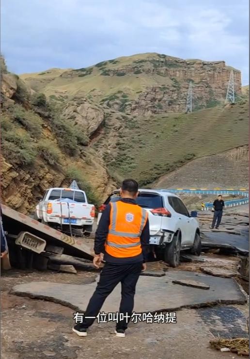 此时女子得车已经卡在了路面塌方边缘,稍微一动就有可能被冲走,左边的门也打不开,当视频录制时女子突然感觉到车子往下滑落,吓得大声尖叫。