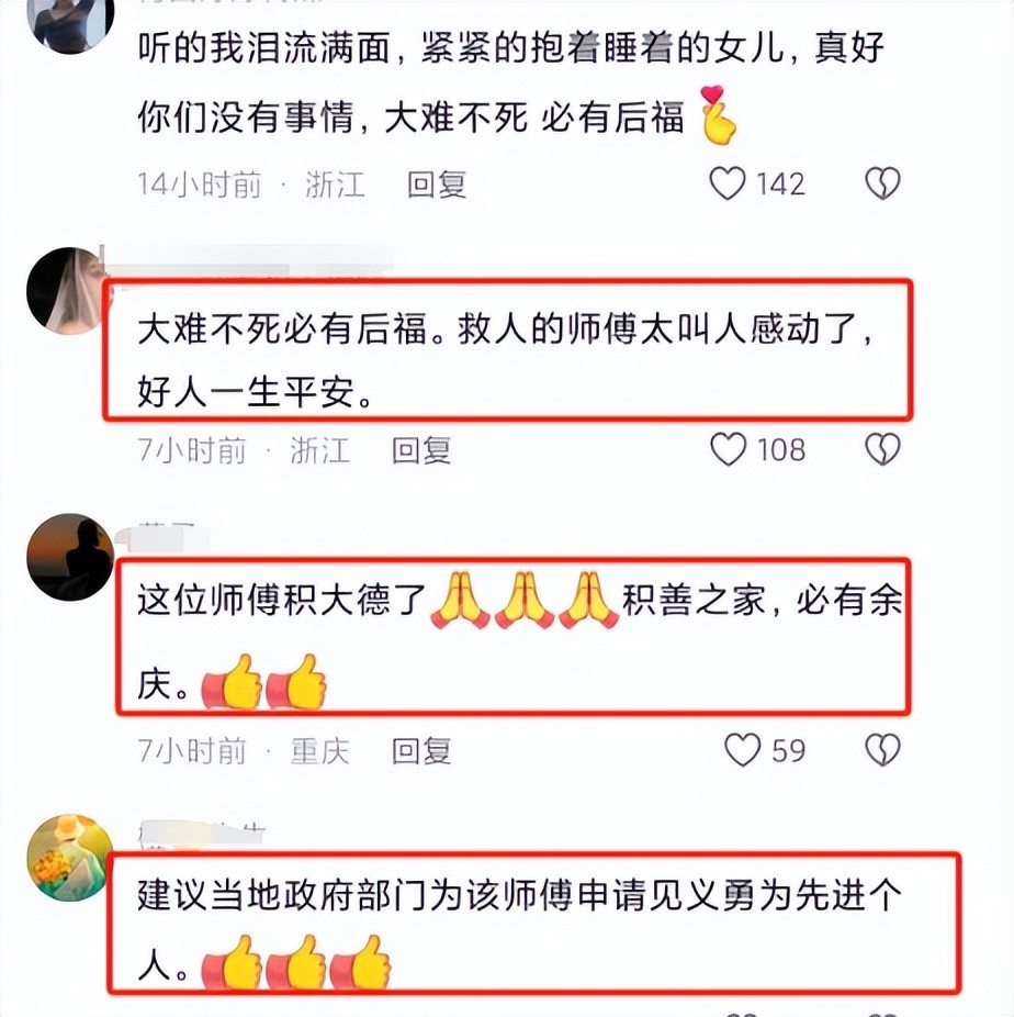 好人有好报,这是我们一直行善积德得信念,在危机时刻救出这位郝女士和她孩子得勇士是值得褒奖得,如果真能够给见义勇为奖,我们举双手赞成。