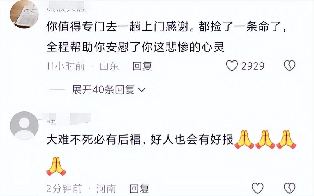 好多朋友为这位母亲送上祝福,也再提醒她不要忘了自己得救命恩人,要专门去一趟表示感谢。
