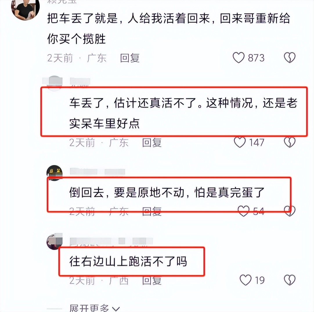 观看了两天前得实时视频,发现网友们也是在现场给她逃生支招,也是煞费苦心啊,你想想当时那个状况,她怎么可能去看你视频下给的留言。