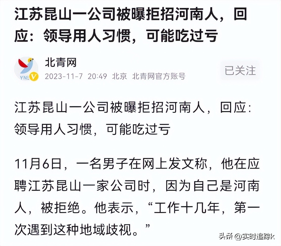 河南人惹谁了?江苏一企业拒招河南人的理由引热议:还有更离谱的